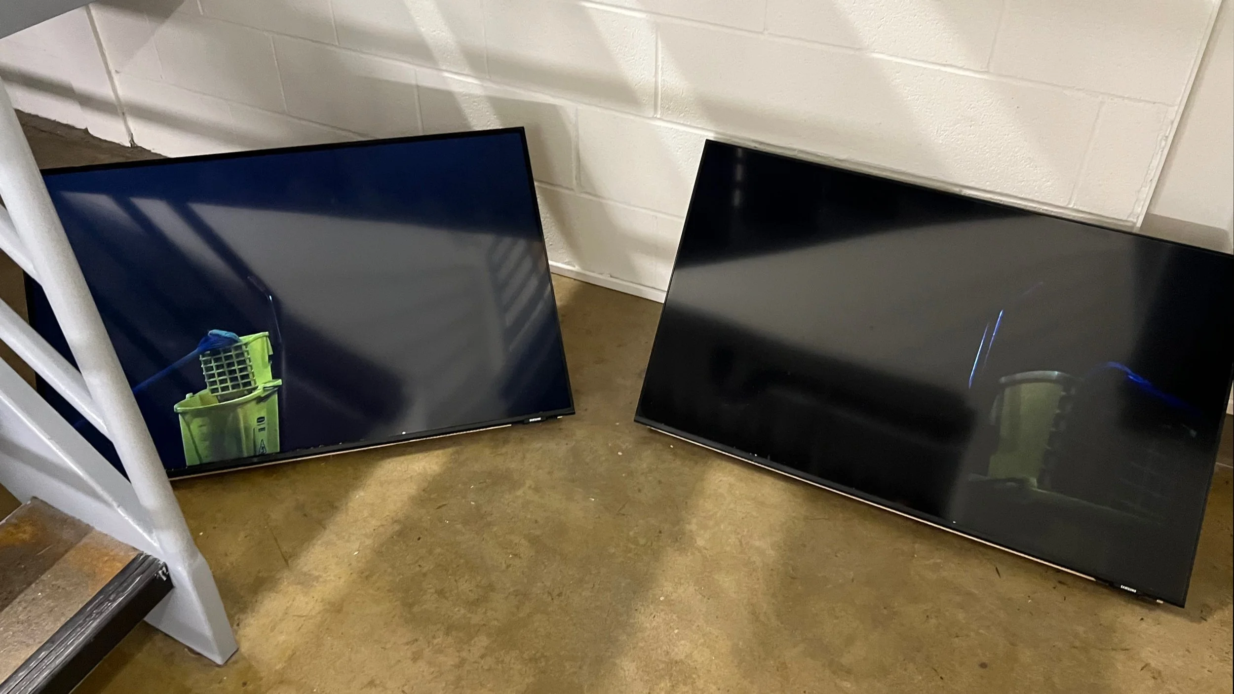 Vidéo numérique à deux canaux synchronisés (image et son), deux téléviseurs de 40 po à écrans plats, socles en bois, lecteurs BrightSign, 8:36 minutes.